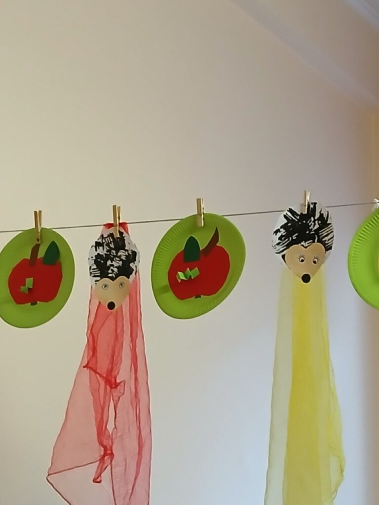 Aktuell dreht sich bei den Ameisen alles rund um den Apfel. Die Kinder erfahren, wo die Äpfel wachsen, wie sie geerntet werden und was man alles Leckeres daraus machen kann. Hier wird auch natürlich gesungen, gebastelt und probiert: Apfeldrucke, Apfelsorten entdecken, Apfelgeschichten hören.