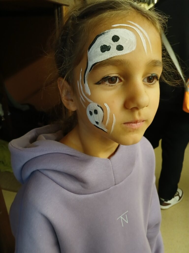 Ein besonderer Höhepunkt waren die talentierten gruseligen Zauberkünstler, die mit ihren Pinseln arbeiteten. Sie verwandelten unsere Kinder in fantasievolle Wesen mit bunten Farben. Ob als kleine Gespenster, zauberhafte Hexen oder mutige Monster. Die strahlenden Gesichter der Kinder zauberten allen ein Lächeln ins Gesicht. Diese magischen Verwandlungen waren ein echter Hit und sorgten für viel Freude und Staunen.