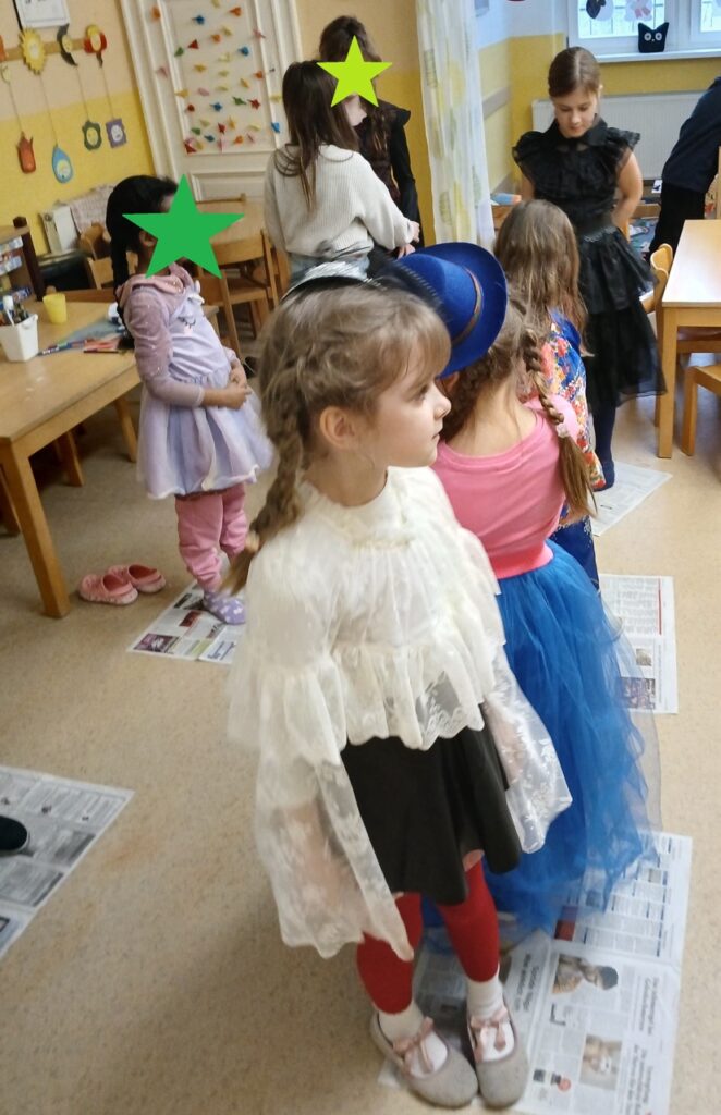 Gut durchgeschüttelt 😉 und motiviert ging es dann zum Stationsbetrieb. Jede Gruppe hatte im Zimmer ein Spiel vorbereitet. So wurden Clowns „gefüttert“, Schätze gesucht; Schneeflocken eingesammelt; Luftballontanz absolviert und auch die Kinderdisco war immer gut besucht.