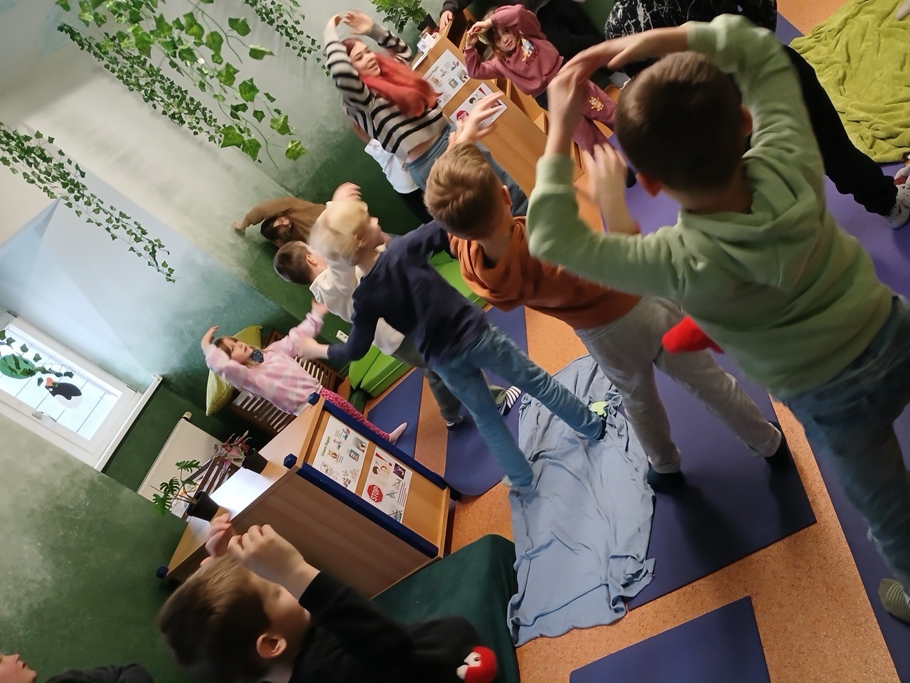 Entspannt starteten wir in die 2. Ferienwoche. Zu Wintermärchen entstanden herrlich vielfältige Bilder der Kinder und beim Winter-Yoga war Gleichgewicht und Geschicklichkeit gefragt. Der Vormittag endete mit der schönen Fantasiegeschichte vom „Schneemann“.